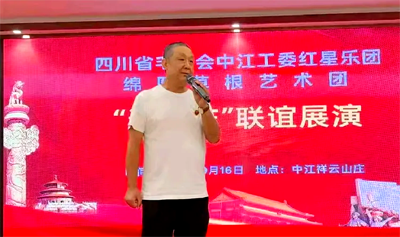 绵阳市草根艺术团团长蒋华致辞。蒋团长表示,草根艺术团始终扎根基层,致力于用群众喜闻乐见的艺术形式传递正能量。此次与中江红星乐团的合作,是艺术与情怀的碰撞,是专业与草根的交融。他希望未来双方能加强交流,共同为繁荣基层文化贡献力量。