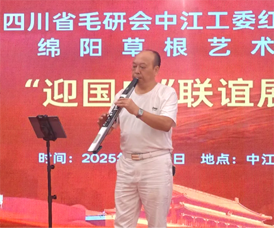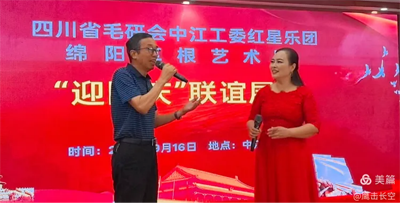2025年9月16日,初秋的祥云山庄层林尽染,金风送爽。四川省毛泽东诗词研究会(以下简称“毛研会”)中江分会红星乐团与绵阳市草根艺术团“迎国庆.联谊展演”活动在此隆重举行,以艺术为纽带,共庆祖国76华诞,传承红色文化,弘扬时代精神。本次活动由叶洪青、何丽蓉主持,现场气氛热烈,掌声如潮,成为中江县文化交流领域的一次盛会。