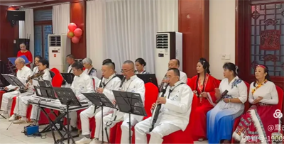 联谊展演在激昂的《欢迎进行曲》中正式拉开帷幕。红星乐团以精湛的技艺和饱满的热情,接连演奏了《好日子》《波兰圆舞曲》《毛主席话儿记心上》《南泥湾》《歌唱祖国》等经典曲目。吴启学副会长深情献唱《最美的歌儿献给妈妈》,歌声婉转悠扬,抒发了对祖国的赤子之心;中江分会顾问团秘书长独唱《我和我的祖国》,将现场氛围推向高潮。这些节目既有红色经典的厚重感,又不失时代气息,展现了红星乐团深厚的艺术底蕴和昂扬的精神风貌。