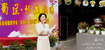一组由本会会员谢启德创作的《桂月闻筝》、张玉果创作的《七绝·金桂》、冯雪梅创作的《中秋》、李友荣创作的《临江仙·中秋》、蒋辉创作的《情暖中秋》、吴成富创作的《中秋》、张远坤创作的《永遇乐·德阳旌湖》、肖泽创作的《水调歌头·中秋望月》、仇昌惠创作的《满江红·仲秋暮游旌湖有感》,一首首原创古体诗词佳作。在李军、李雪艳、张远坤、叶霭梅的诵读下,将他们对佳节的喜爱、对家乡德阳的眷恋,深深融入在作者沉醉笔墨里的情怀。
