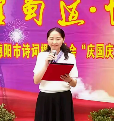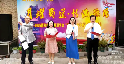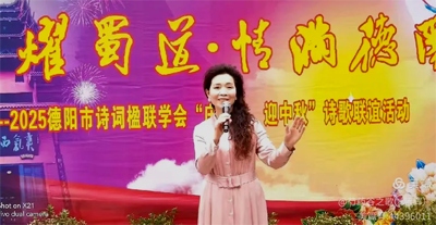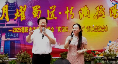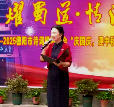 应德阳日报、德阳广播电视台的邀请,涂惠会长专题创作的《月耀蜀道· 情满德阳——致2025央视中秋晚会》主题诗作,在青藤、张卓、房建英、冯敏深情朗诵下,把这次国庆.中秋联谊活动推向高潮,赢得现场热烈的掌声。