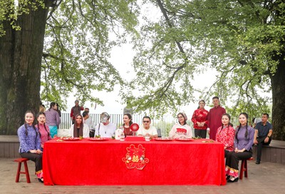 2025年10月1日,外国留学生在四川省华蓥市红岩乡“十里芳菲·红岩美村”山居民宿,体验非遗“坐歌堂”,与当地群众共同欢度中国国庆、迎接中秋佳节。(邱海鹰/摄影报道)