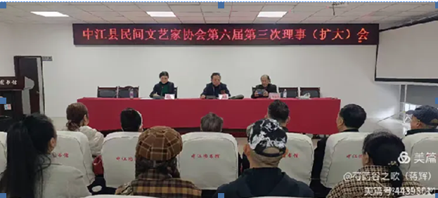 2025年11月8日上午,中江县民间文艺家协会,在县图书馆召开中江县民间文艺家协会第六届三次理事会(扩大)会议。这次会议由县民间文艺家协主席廖昌在主持,并在会上作学习贯彻党的二十届四中全会精神宣讲。本协会主席、副主席、秘书长、常务理事及理事30余人参加了会议。