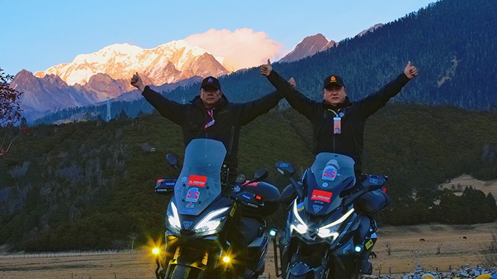 接过旗帜的瞬间,一个更具体的使命在他们心中定格——“我们将扛着这面会旗,骑行1199公里到达G318终点樟木口岸,并以此为新起点,骑出国门,进入尼泊尔环骑。让‘无界’的精神,真正延伸。”