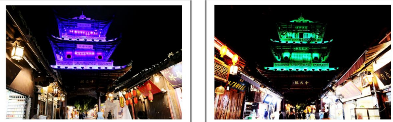 中天楼在古城区中拔地而起,气势恢弘,建造精美,宏伟壮丽,与古城景观协调统一,从古城四个方向均可饱览它的丽姿;登上楼顶,视野开阔,古城的环境格局尽收眼底。