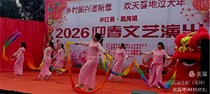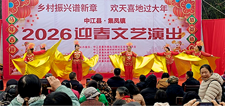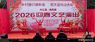 2026年2月9日上午,由中江县集凤镇走马铺社区居民委员会、中江县集凤镇拱桥村村民委员会、中江县集凤镇枫桥村村民委员会、中江县集凤镇飞马村村民委员会主办,德阳市农商银行集凤支行、中江县集凤邮政支局、中江县锦欣传媒协办的“乡村振兴谱新章 欢天喜地过大年——2026迎春文艺演出”在走马铺社区文化广场举行。