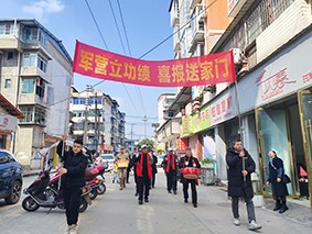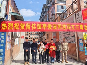 2月11日,荣县退役军人事务局联合留佳镇党委、政府,组成一支热烈的送喜报队伍,敲锣打鼓前往留佳镇现役军人李俊波家中,为其家属送上承载荣誉的三等功喜报、立功奖章和慰问金,让军人荣誉看得见、摸得着,在全社会营造“一人立功,全家光荣”的浓厚氛围。