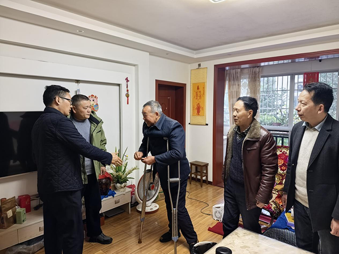 2026年2月14日,春风送暖,阳光明媚。在新春佳节来临之际,阆中市川陕革命根据地历史研究会会长樊阳、秘书长秦嘉顺,会同阆中市红军烈士纪念园园长宋旭阳,带着党和政府的深切关怀,在江南街道江南社区干部陪同下,走访慰问伤残三级军人宋定伦与91岁高龄退伍老兵杨永发,为革命前辈送上慰问金和新春祝福,以实际行动致敬英雄、温暖老兵。