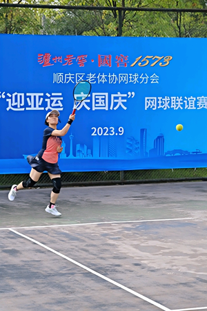 为了迎接第19届“亚运会”在我国举行和新中国成立74周年,增加节日气氛,南充市顺庆区老体协网球分会与泸州老窖股份有限公司于9月16日在该市体育公园网球场联合举办了以“泸州老窖.国窖1573”冠名,以迎“亚运”、庆“国庆”为主题的网球联谊赛。