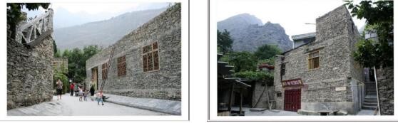 羌寨内坚韧古朴的建筑都是在不绘图、不吊线、不搭架,用泥土和片石信手砌成的。尤其令人叹为观止的是,寨内石碉墙面不平光,是别具匠心地砌出的一个个波纹,使墙面正中出现一个从顶到底的棱角,这一棱角两侧被一分为二的墙,柔和地内弯,使墙面开成鼻状,其奥妙就在于使楼房所受压力通过这一曲线被波纹分流扩散,同时又使单调的墙面顿生峥嵘,历经千百年风霜雪雨的洗礼,包括地震波及(距离汶川城区16公里,2008年汶川“5.12”地震),古堡至今仍然完好无损。