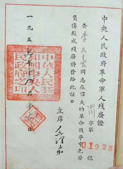 历史书太薄,我随手一翻的革命军人残疾证,就是你扛枪冲锋、浴血沙场的波澜壮阔的一生;历史书又太厚,厚到装不下你和战友们迎着炮火敢打敢拼、用热血护山河的豪迈,写不尽你们把生死抛身后、誓守家国的壮烈。