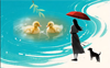月亮升起来时,朵朵正趴在石桌上画月亮。她拿着蜡笔,把月亮涂得金黄金黄,还在旁边画了两个牵手的小人。“阿婆,这是你和爷爷吗?”朵朵仰着小脸问。