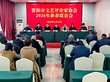 2026年2月12日下午,四川省资阳市文艺评论家协会在金迪大酒店举办2026年新春联谊会。市文联专职副主席、市宣传系统行业协会党委副书记邓时光到会指导。协会主席张德明,党支部书记、常务副主席吴杰,副主席唐文汉,党支部副书记舒朝水和各兄弟协会主要负责人、会员代表近三十人参加会议。会议由协会秘书长胡佳音主持。
