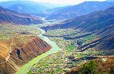 随后,我们驱车行经仰天湾,驶过飞架于大渡河上游金川江上的铁索桥,进入德胜村著名的“梨花沟”,再向黄土碉方向前行,到达半山处的观景台。