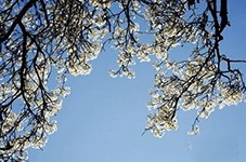 接着,我们乘兴迈进路边一家农户的梨园。目光所及,无论是奇崛苍郁的老树上,还是粗大茂盛的壮树上,梨花或含苞待放、或花蕊绽开,或一朵朵、或一簇簇,密密匝匝地挂满枝头。走到树下仰望,那梨花在刚抽出的一枚枚嫩黄色的叶片映衬下显得那样的白——白得晶莹,白得水灵,白得纯洁,白得耀眼;和风习习拂过,花瓣微微颤动,令人顿生怜爱,不禁怦然心动;一阵微风吹来,就有花片似雪花般飘洒而下,或落在头发间、衣服上,或躺在大家匆忙伸出的手掌里,端详把玩之间,令人情趣盎然!