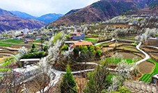 返程中,我们再经庆宁乡政府,沿陡峭的齐头岩沟内的机耕道,前往闻名全川的海拔接近3000米的老松坪观景台。一家人居高临下,将由碧水流淌的大金川、逶迤于两岸的山梁、满山遍野的梨树及其绽放的梨花等构成的绝美的“全景式”梨乡景观尽收眼底,再次体验那荡气回肠、震撼心灵的强烈感受后,才意犹未尽地驱车返回马尔康。
