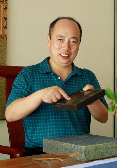 【欧阳简介:又名欧阳勇,男,1973年生,自幼喜爱文艺,雕刻,绘画,进修于云南大学艺术学院和全国非物质文化遗产砚雕培训班学习。中国民间文艺家会员,四川省民间文艺家协会会员,巴中市民间文艺家协会副秘书长、奇石根雕花艺协会常务副秘书长、诗词楹联协会会员、旅游协会理事,中国巴中非物质文化遗产文化巴砚传承人。欧阳先生制砚取材于南江县公山镇桥坝乡木竹坝境内,巴砚种类多:白花石,沙石,菊花石,龙鳞石,紫黄石,巴玉,推陈出新,采用平雕、镂空、阴雕、阳雕、二维三维立体雕等方式,通过选材→开料→构图→造型→粗雕→细雕→刻画→打磨→干抛光→水抛→洗涤→晾晒→补刀→洗涤→蒸煮→拭水→上蜡→光亮处理等等工序,以切、敲、打、磴锉、稳、冲、急、缓等技法,惜石成金,终于将“巴砚”打造成了全国砚台艺术中的一枝奇葩,获得书画界和石砚界的高度认可,成为炙手可热的高端馈赠礼品。其作品多次获奖。如巜云龙砚》荣获2019年全国旅游商品大赛铜奖,《天宫》砚,《琵笆》砚荣获“2019泰山设计杯文化创意大赛”银奖和铜奖。《砚果》荣获”2019天府,宝岛工业设计大赛”银奖。《佛山宝韵》荣获中国国宝艺术品金奖(A级),《红心向党》荣获巴中市第三届“巴中有礼”文化旅游商品有礼铜奖,同时又获得省文创产品入围奖。】