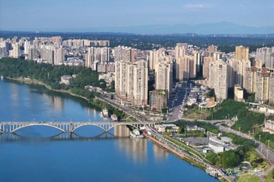 巴山苍苍,嘉水泱泱。武胜故城,雄踞山冈。肇基于宋元烽燧,巍然为川东屏障。一江割西东,双城镇莽苍。巴蜀形胜地,嘉陵锁钥长。