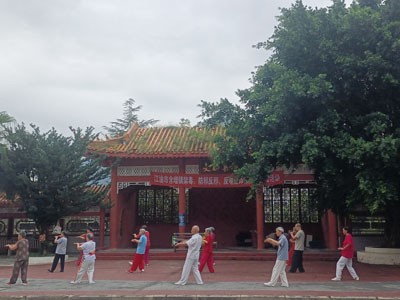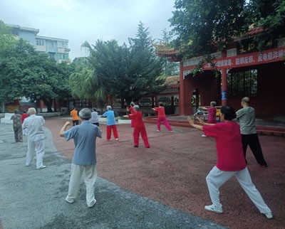 镇街道边的广场上打太极的老者早已有之,他们身着素白、红色衣衫,姿态舒展而从容,在熹微晨光中仿佛一幅会呼吸的古画。他们动作舒缓,如轻云舒展,如溪水缓流,吐纳之间气息悠长,似乎与草木同呼吸。我亦寻一处角落立定,看着他们合拍的太极练习,随他们一同舒展筋骨。深感自己四肢百骸渐次苏醒后的通泰。仿佛都将身体里郁积的浊气缓缓推散于无形之中。时光如无声之水,一个时辰不知不觉便消融于指间,便悄悄离开,走出街道广场,踏过街道上的水泥路,穿过石坎坡的桥洞,到了镇街农贸市场,目见早早沸腾的烟火气扑面而来。