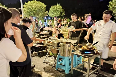 摊贩集群早侍候,珍馐琳琅馋嘴诱;