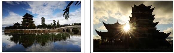青华海国家湿地公园一角 永子棋院楼的佛光