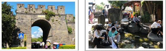 大理古镇的大门 游客们可以坐在溪流边纳凉