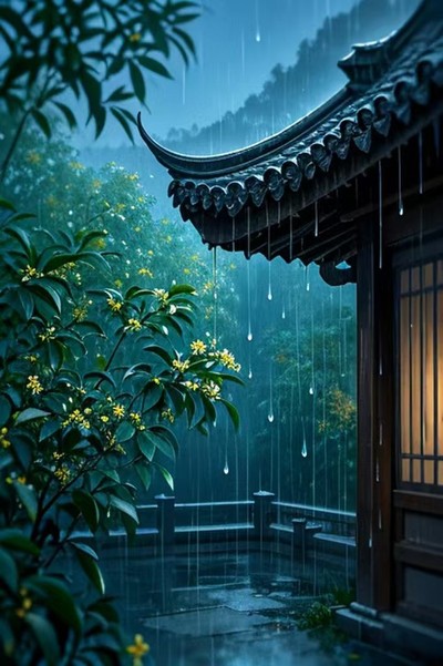 初秋夜雨凉,檐滴碎琳琅。 风送桂花气,窗含竹叶光。 露凝荷上重,云卷月中藏。 此际心无碍,悠然入梦乡。