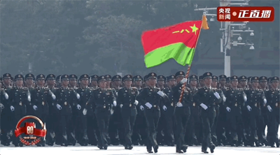 空中护旗梯队拉开了分列式的序幕,伴随着激昂的军乐,中国共产党党旗、中华人民共和国国旗、中国人民解放军军旗高高飘扬。26架直升机组成巨大的“80”字样;3架直升机分别悬挂“正义必胜”“和平必胜”“人民必胜”条幅,这是历史启示的伟大真理,这是天下正道的庄严昭告,这是和平发展的时代强音!