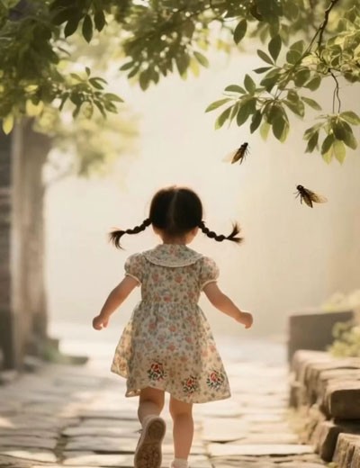 多想回到小时候啊,回到那个蝉鸣声声、阳光洒满青石板的午后。那时的天空是湛蓝的,云朵像棉花糖一样轻盈地漂浮着,风从巷口吹来,带着槐花的香气和邻家奶奶晒被子时棉布的暖意。我站在记忆的门槛上,望着那个扎着羊角辫、穿着碎花小裙子的小女孩,她正蹦蹦跳跳地走在放学回家的路上,脚上是一双母亲一针一线缝制的布鞋。那鞋底厚实,针脚细密,鞋面上还绣着一朵淡粉色的小花,是妈妈在灯下一针一线为我缝进去的温柔。
