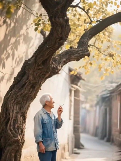 最让我魂牵梦绕的,是那胡同的拐弯处。拐角有一棵老枣树,树皮斑驳,枝干虬曲,像一位沉默的守望者。而就在那树影斑驳的地方,曾有一个身影,日复一日地站着——是年轻的父亲。他穿着洗得发白的蓝布工装,手里捏着一根烟,却不常点,只是静静地等。等那个背着书包、蹦跳着向他跑来的小女孩。他从不催促,也不责备我走得慢,只是笑着接过我的书包,牵起我的手,说:“今天在学校乖不乖?”