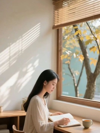 午后的窗外,是另一种静谧。阳光变得慵懒,斜斜地穿过百叶窗,在墙上投下一道道平行的光影,像时间的刻度,无声地滑动。她坐在书桌前,手边是一杯凉了的红茶,笔记本摊开,写着一段未完的故事。窗外的梧桐树在微风中轻轻摇曳,叶片沙沙作响,仿佛在为她的思绪伴奏。偶尔有情侣牵着手从楼下走过,笑声清脆,像风铃在风中轻晃。她停下笔,凝视着那对背影,眼神里掠过一丝温柔的羡慕,又迅速被平静掩盖。她不是没有爱过,只是那些故事早已被岁月封存,成了心底最柔软也最遥远的章节。窗外的世界依旧喧嚣,但她的心却像被按下了暂停键,在某个瞬间,只想安静地看一片叶子如何缓缓飘落。