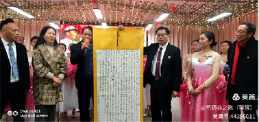 节目表演间隙、四川省毛泽东诗词研究会副会长、著名书法家武传法先生向会议赠送字画。
