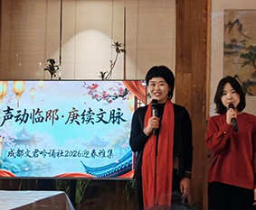 立春次日,夕阳的余晖为四川邛崃的文脉坊披上一层暖金色的薄纱。新山书屋内,墨香与茶香交织,一场特别的聚会正在这里发生——成都文君吟诵社“声动临邛,赓续文脉”迎春雅集悄然开启。