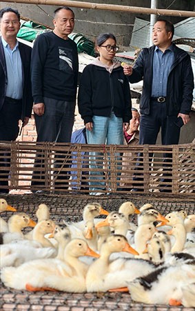 土溪镇副镇长兼片区畜牧站长杨建、副站长雷长江也陪同调研,他们向宁孝勇等专家介绍了土溪镇鸭养殖以稻鸭共栖生态散养模式为主,全年养殖总量约5万只,同样存在规模养殖不足、加工企业匮乏的发展短板。在土溪镇水口社区1组渠县禄清源家庭农场负责人王伦说出自己急需的养鸭技术:如何提高育雏存活率,如何解决小鸭、中鸭、大鸭的“换料关”等问题。老专家们不走过场、直击给出答案。同时,专家们记下了防疫、“换料”等农户的“急难愁盼”问题。