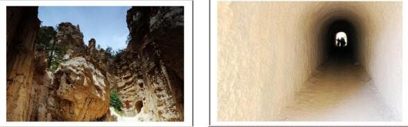 这段隧道应该是人工掘成,并且用混凝土拱筑,解决景区进出的通道, 隧道表面处理得比较好,与周围基本形成一体,游人不注意还以为是天然隧道。