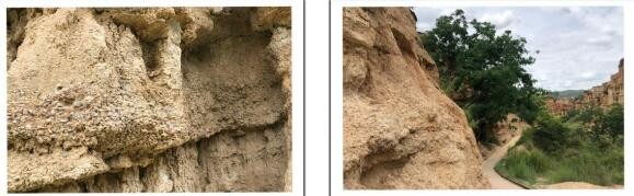 近处看土林堆积物就是鹅卵石、细沙和泥土