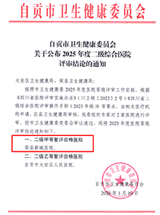 2026年1月23日,记者在荣县新城医院采访获悉,近日,自贡市卫生健康委员会正式公布2025年度医院等级评审结果:“荣县新城医院成功通过二级甲等综合医院复审”。这标志着该院在资源配置、服务质量、安全管理等方面持续符合高质量标准,不仅是对医院综合实力的权威认可,更进一步巩固了其在区域医疗卫生体系中的核心作用,为提升区域整体健康保障水平提供保障。