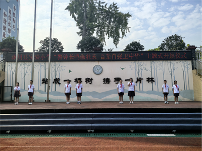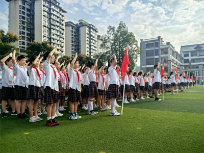 她寄语全体同学“要始终保持警醒,把爱国之志转化为报国之行,锻炼强健体魄,学好文化知识,掌握过硬本领,将来为捍卫和建设祖国贡献青春力量。”六(3)中队的少先队员们以铿锵有力的集体献诵,表达了对祖国的深厚情感,展现出实小学子昂扬向上的精神风貌。(李正银/文图报道)