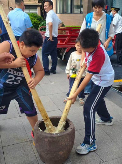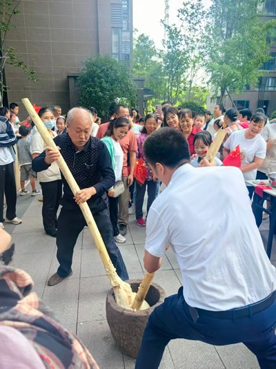 将活动气氛推向顶点的,莫过于充满传统趣味与协作精神的打糍粑环节。伴随着木杵起落的铿锵节奏,蒸腾的糯米香气在现场弥漫开来,仿佛是节日的芬芳在空气中流淌。居民们围聚在一起,共同挥洒汗水,将热气腾腾的糯米反复捶打,直至变成绵软筋道的糍粑。随后,大家分享着这份亲手制作的甜蜜,每一口都饱含着劳动的喜悦与邻里的温情。现场欢声笑语不绝于耳,熟悉的、陌生的面孔在协作与分享中变得亲密无间。活动凝聚了社区大家庭的温暖记忆,成为深植于每位居民心中的美好印记。