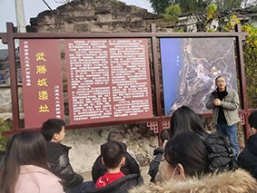 随后,县委党史和地方志研究中心、县申遗办干部李松林登场,为孩子们开启了一场穿越时空的传统文化之旅。他以“武胜城”的故事为切入点,将700多年前那段波澜壮阔的历史画卷徐徐展开。孩子们仿佛置身于那个金戈铁马、烽火连天的时代,亲眼目睹蒙哥大军攻打合川“钓鱼城”的激烈场景,感受历史的惊心动魄与跌宕起伏。李松林还详细讲述了这段武胜城如何影响了世界和中国历史,以及“武胜城”与合川“钓鱼城”等遗址联合申报世界文化遗产的重大意义。他深入浅出地分析了申报对武胜未来发展的深远影响,从文旅产业的蓬勃兴起,到城市知名度的显著提升,再到文化传承与创新的无限可能,让孩子们深刻认识到家乡文化的独特魅力和重要价值。