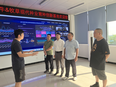在筠连县科技特派员服务团副团长、国家现代农业产业技术体系四川肉牛创新团队副首席、肉牛智能化生产技术研发与示范岗位专家、四川省畜牧科学研究院牛业科学研究所副所长王巍研究员的带领下,考察一行实地近距离“触摸”了实验牧场体况评估系统、精准饲喂系统、健康监测预警与疾病诊疗系统、环境监测与智能调控系统、发情监测预警系统等,还在科研大楼观看了这些系统的全景监控实时大屏,听取了王巍研究员的实验牧场智能化系统详细介绍,请教了相关疑惑内容。该牧场技术支持单位、四川楠水农牧科技有限公司董事长张俤、宜宾市牛业科技服务有限公司董事长杨权、四川万汇大数据有限公司董事长王飞,还就成本与牛场智能化具体内容、环节步骤等进行了探讨。