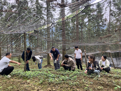 刘蓉博士一行,一边听取杨川副乡长全乡以黄连、淫羊藿、白芨、黄精、川芎为主的中药材发展情况介绍,一边查看这些中药材的长势情况,并对发现的烂根、焦叶、病害茎叶取样,带回宜宾学院农林与食品工程学部通过实验室检测,为后面综合防控提供具体方案。刘蓉博士,研究生毕业于中国科学院成都生物研究所,擅长作物优良新基因的挖掘和机制研究、药用植物次生代谢产物合成机理研究。郑璐遥博士,研究生毕业于中国药科大学,擅长药食同源物质中活性成分的挖掘及其作用机制研究。吴望硕士,研究生毕业于西南大学,擅长植物真菌病害防治机理研究。