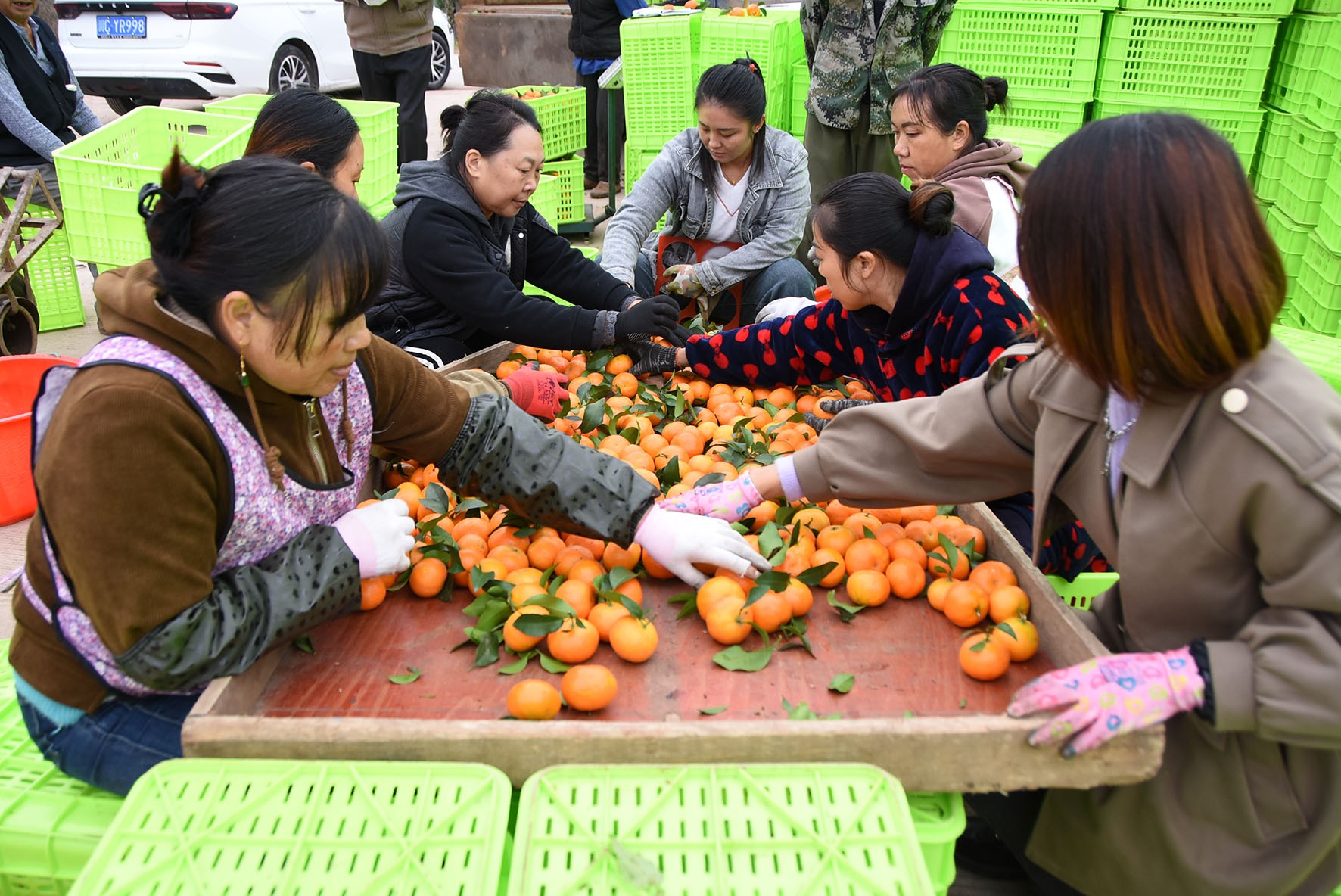 2万亩柑橘正在采。阴嘴村2组果农周淑明,正在请采果队的采摘砂糖橘。镜头下,那压弯枝头的砂糖橘,血红血红的,个头有鸡蛋大小的,有乒乓球大小的,它们相拥在一起亲如兄弟。“每亩产量约8000斤,果园边过秤批发给老板2元一斤,单价不高但产量有优势,总的来说效益过得去。”周淑明说。