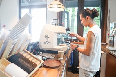 华蓥市红岩乡山居民宿“十里芳菲?红岩美村”的工作人员,在调制供游客饮用的咖啡等饮料。