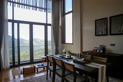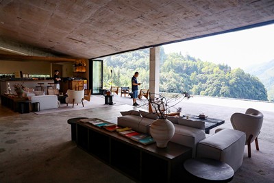 华蓥市红岩乡山居民宿“上山上?抱翠”观景大厅一角。