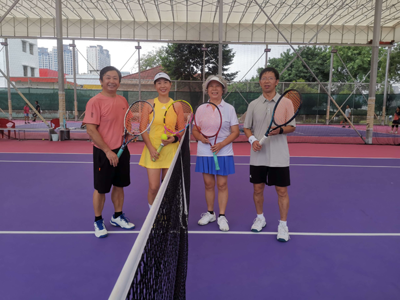 9月27日和28日天刚蒙蒙亮,全体参赛队员就赶到比赛现场,参赛队员分别在网球场展开激烈拼杀。队友之间相互鼓励、加油,选手们精神抖擞,全力拼搏,时而奋力抽杀,时而灵活轻调,你来我往,互不相让。大力发球,上旋、下旋、底线对抽、正手切球、反手切削,正手穿越、网前截击、中场高压、放小球、挑后场……一球要来回打几十拍才分出胜负,尽情展示自己的看家本领。“加油”“好球”“漂亮”…此起彼伏。许多队员都表示,在中秋节、国庆节前夕,网球分会给我们提供了这样好的平台,我们要发扬拼搏精神,不仅要赛出水平,还要赛出风格,以实际行动庆祝新中国成立76周年。比赛前大家都谦让对方先选场地或发球,比赛中球挂网得分都要向对方举手表示歉意,赛完都要主动和对方球友握手并祝贺对方取得好成绩。
