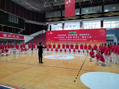 舞凤街道《嬉舞扇韵》《绿水青山》,则用舞蹈讲述家乡发展与生态之美;声乐分会的女子合唱团、天韵合唱团,先后献唱《桃花红杏花白》《南湖的船党的摇篮》《弹起我心爱的土琵琶》《游击军歌》,各声部配合默契,立体音响层次清晰,赢得阵阵喝彩,其指挥宋敏曾率队获武汉“又见大别山”全国合唱大赛第二名。此外,健身舞《美丽中国》、响扇舞《梅花赋》、自编秧歌《黄河源头》、藏族舞蹈《饮酒欢歌》、伞舞《茉莉花开》等节目,均歌颂党的领导、展现新中国76年巨变,寄托家乡美好祝愿。