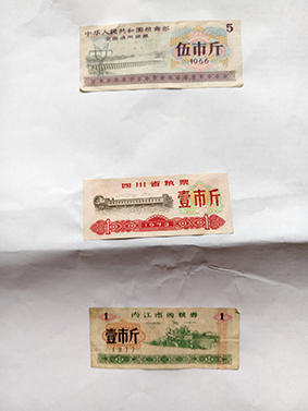 这是给听众展示的计划经济时代的粮票