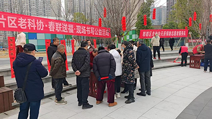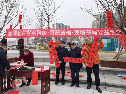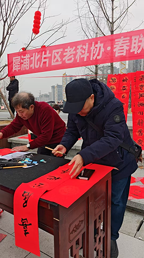 2月4日上午,郫都区老科协联合犀浦街道北片区老科协在犀浦体育公园共同举办“迎新春·送祝福”现场书写春联公益活动,活动现场,红纸铺展,翰墨飘香、喜气洋洋。充满了新春佳节浓厚的文化氛围和暖意。