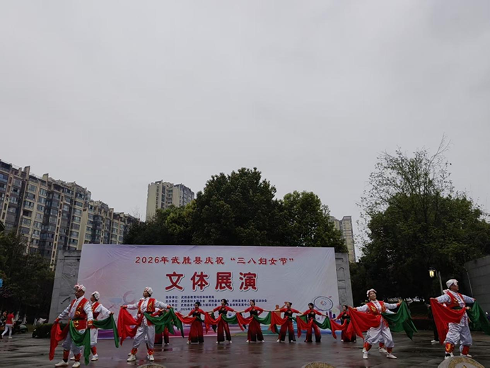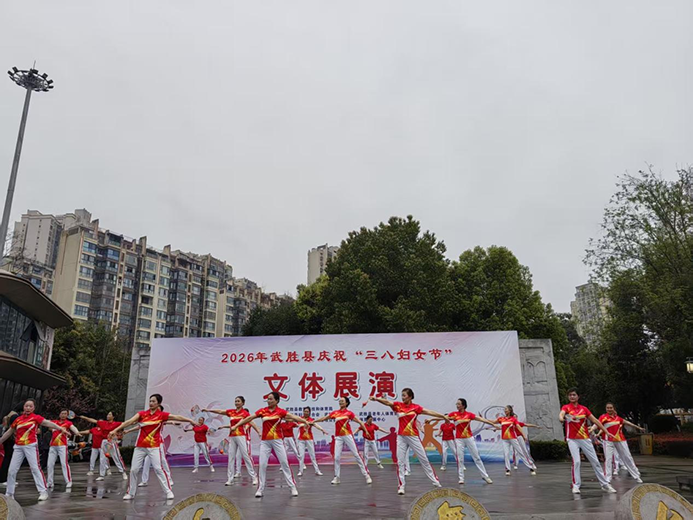 3 月 7 日,武胜县老年人体育运动协会和武胜县妇女联合会联合在县人民广场举办庆祝三八国际妇女节文体展演活动,120 名展演人员登台献艺,为广大妇女群众送上节日祝福,助推全国全民健身模范县创建。